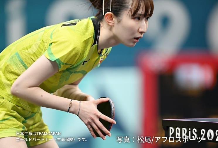 東京五輪は補欠という立場で多くのことを学びました。2024年のパリオリンピック出場が決まった時は本当にほっとして「やっとスタートラインに立てた」という気持ちでした。大会ではシングルスの準々決勝の後に左手を痛めてしまい、できることが限られる中での戦いとなりました。それでも本当にたくさんの方々に支えていただき、銅メダルを獲得することができました。本当にありがとうございました。怪我からの復帰後も苦しい時期は続きましたが、その経験があったからこそ、自分自身との向き合い方も少しずつ変わってきたように感じています。今は怪我の意識にとらわれず試合に集中ができています。2028年のロサンゼルスオリンピック出場を目指し、これからも努力を重ねていきます。引き続き応援のほどよろしくお願いします!