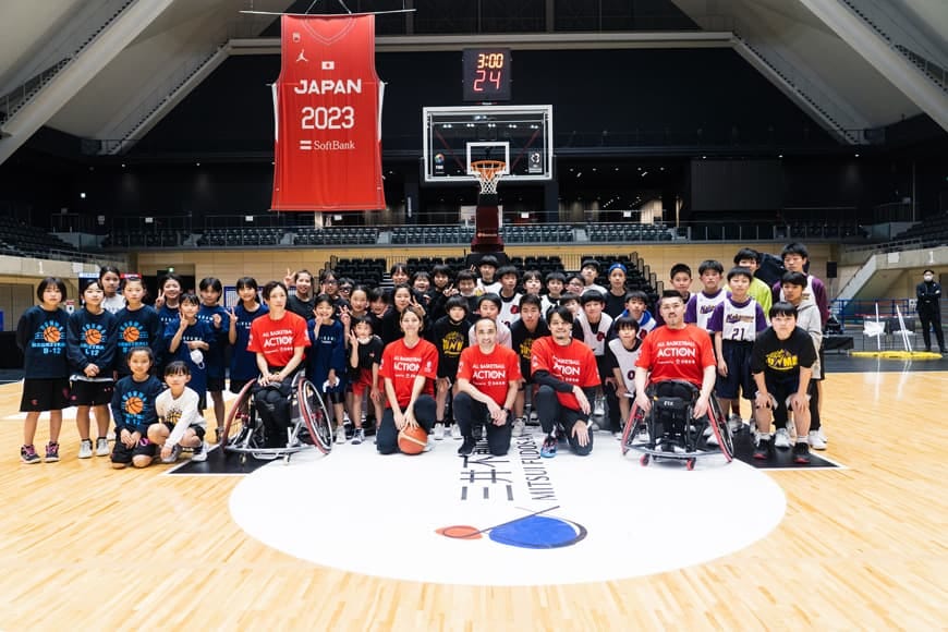 地元のミニバスチームの子ども達を対象に、世界で活躍するバスケットボール選手から自分の経験を踏まえた、夢を持つことの大切さ・仲間との支え合いをテーマとした「夢の授業」、プロ選手による「バスケットボール指導」や「車いすバスケットボール体験会」を実施しました。