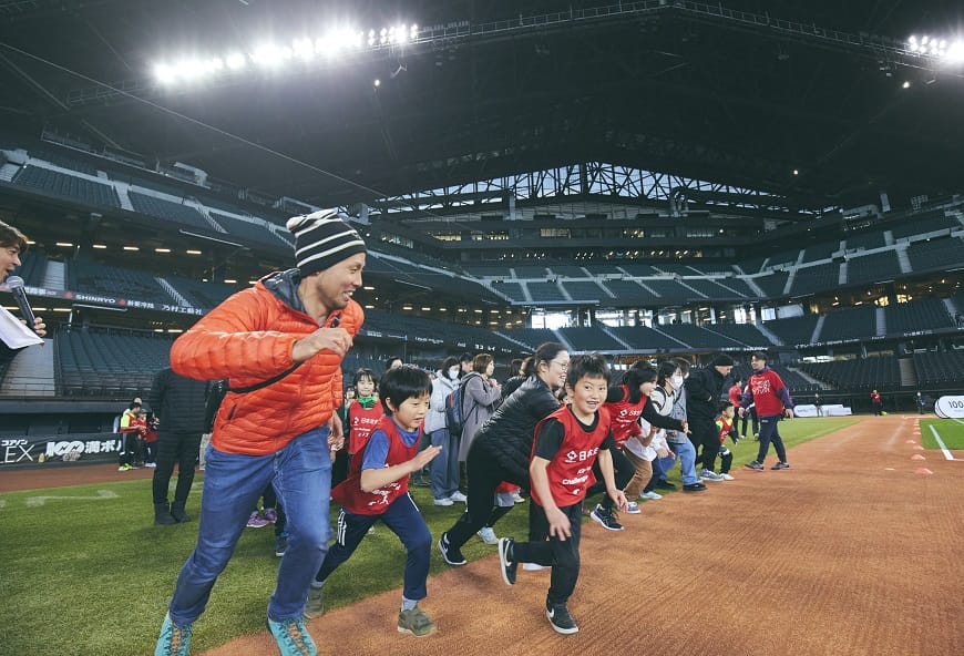 今回、その事業の一環として、桐生祥秀選手による“Kiryu Challenge Clinic”を北広島市にあるエスコンフィールドHOKKAIDOで開催しました。