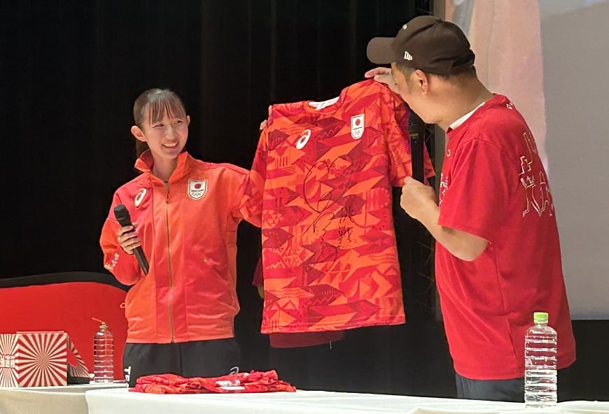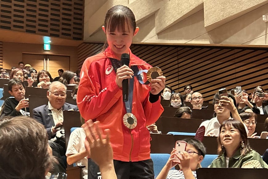 パリ2024オリンピックで獲得した2つのメダルを持ちながら会場を歩いて、応援してくれている方々へお披露目してイベントは終了となりました。