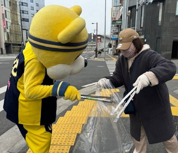 クラブからはチアリーダーのメンバーやクラブマスコットの“ブレッキー”も一緒に清掃活動に参加をしてくださいました。