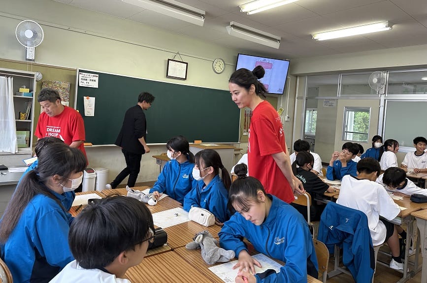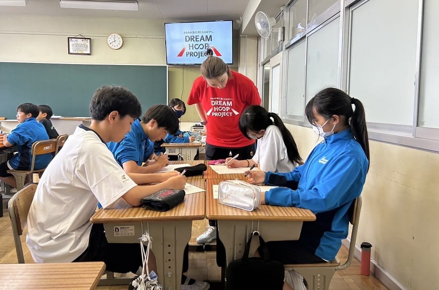 バスケ選手が講師となり、これまでの経験を伝えることで、夢や希望を持つことの大切さや将来について考えるきっかけづくりを行っています。