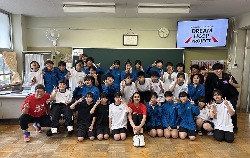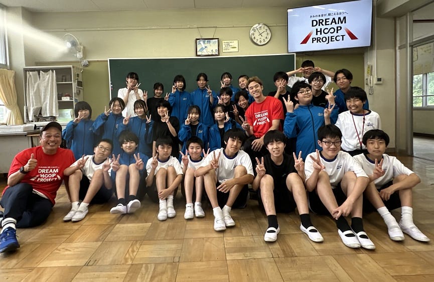 「夢」は「輪」のように終わりがなく無限だということを伝えていきたいという想いを込めたプロジェクトです。バスケ選手による授業であることから、バスケのリング「HOOP」とかけて、このプロジェクト名としました。
