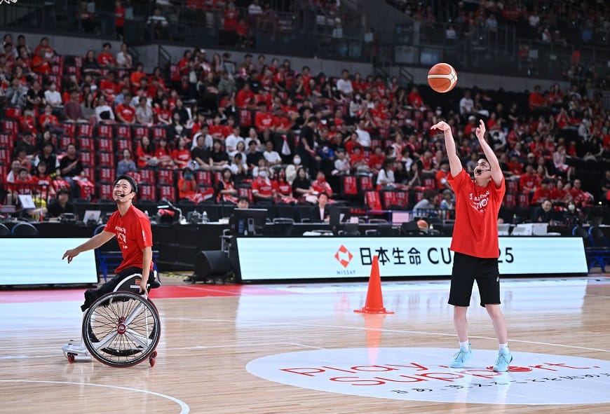 2025年7月6日(日)有明アリーナにて、「ALL BASKETBALL ACTION 2025 in 有明 supported by 日本生命」を開催。東京パラリンピック車いすバスケットボール男子日本代表の古澤拓也選手、鳥海連志選手、さらに、柏木真介さん(シーホース三河)、米須玲音選手(川崎ブレイブサンダース)が登場し、カテゴリーの枠を超えたチャレンジマッチに挑戦しました。