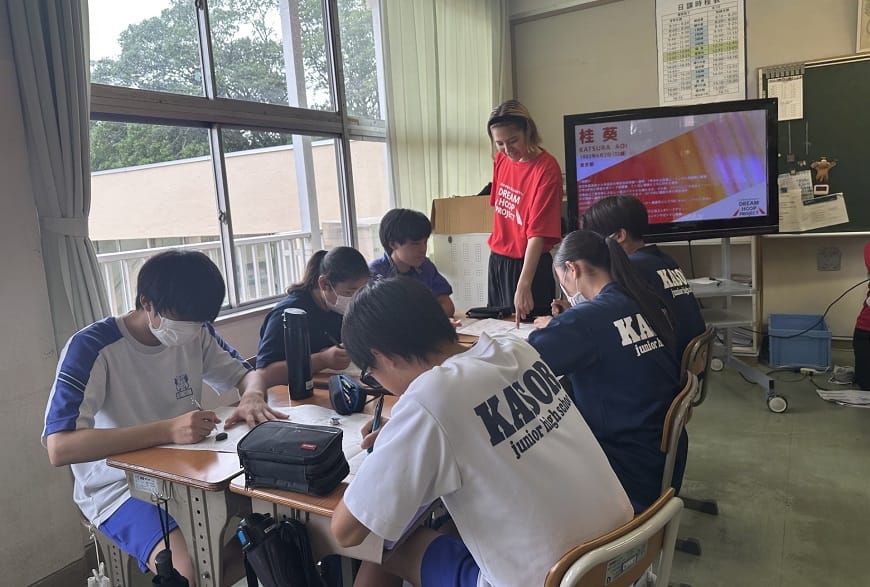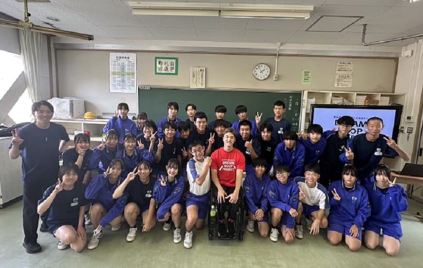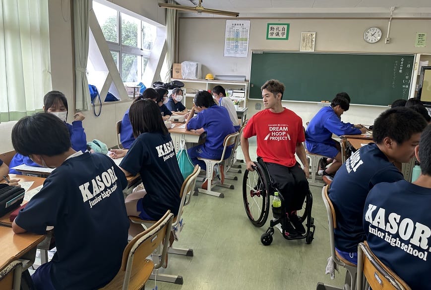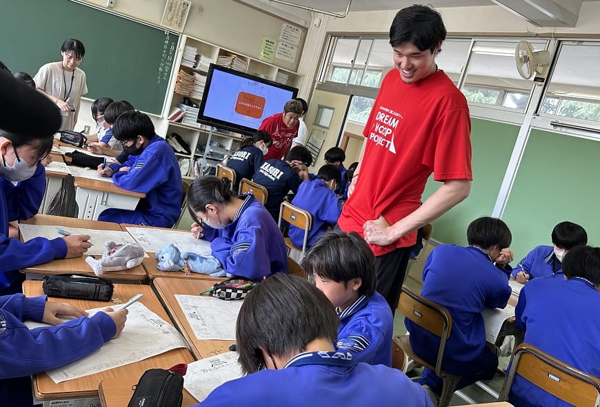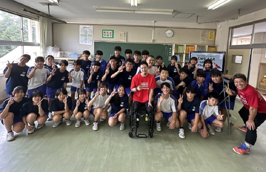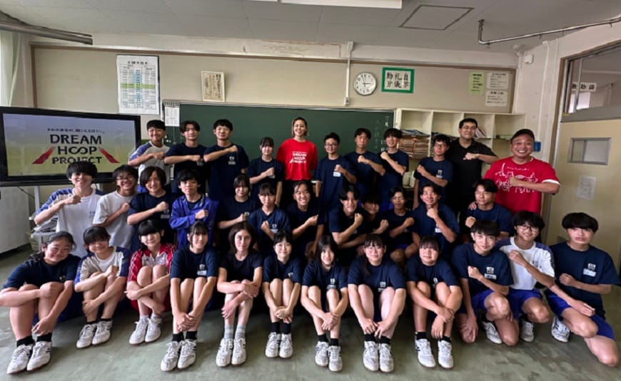 バスケ選手が講師となり、これまでの経験を伝えることで、夢や希望を持つことの大切さや将来について考えるきっかけづくりを行っています。