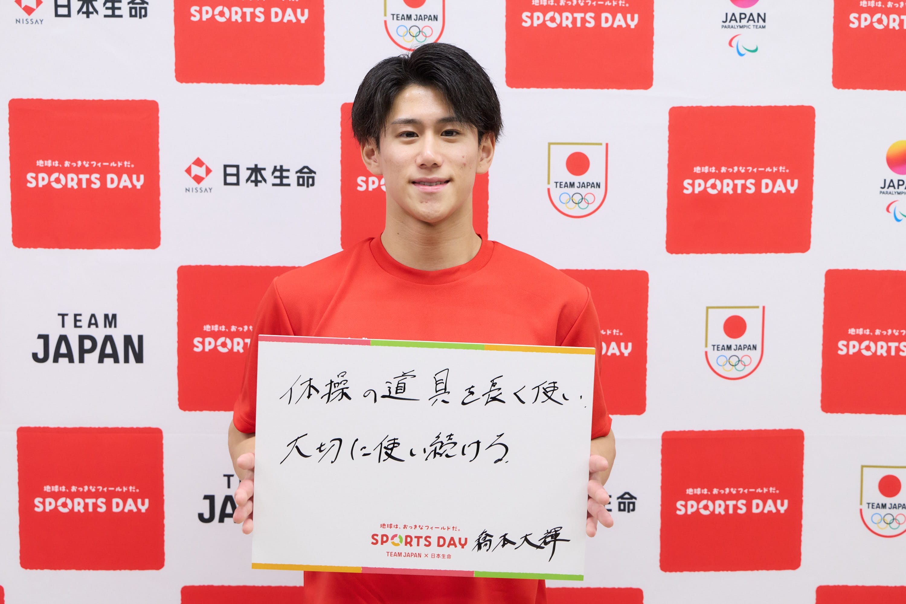 橋本選手は「自分自身が体操で魅せて、外で運動する子どもたちを増やし、電気の使用量を減らす」「体操の道具を長く使い大切に使い続ける」と宣言しました。