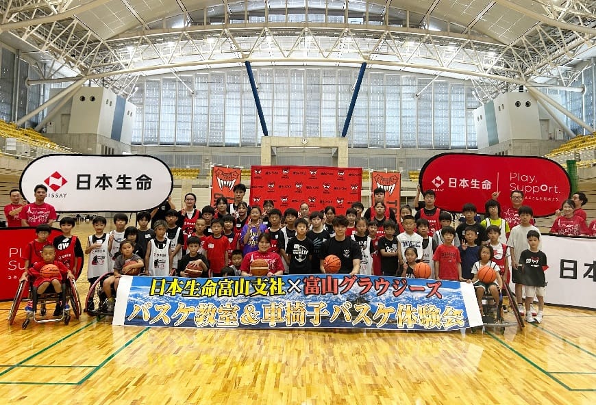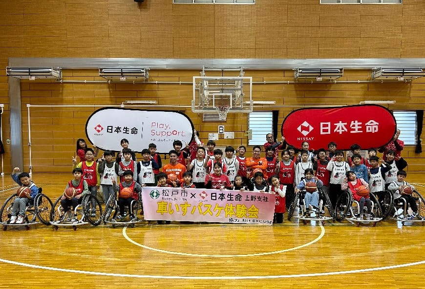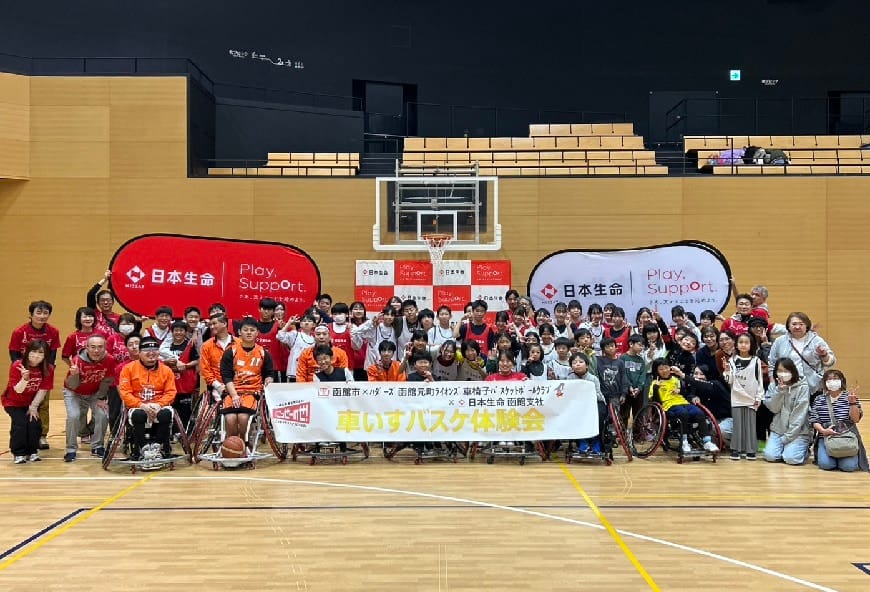 活動の一環として、車いすバスケットボールの魅力を伝えるべく、全国各地の支社で自治体や地元のチームに協力いただき体験会を開催しています。
