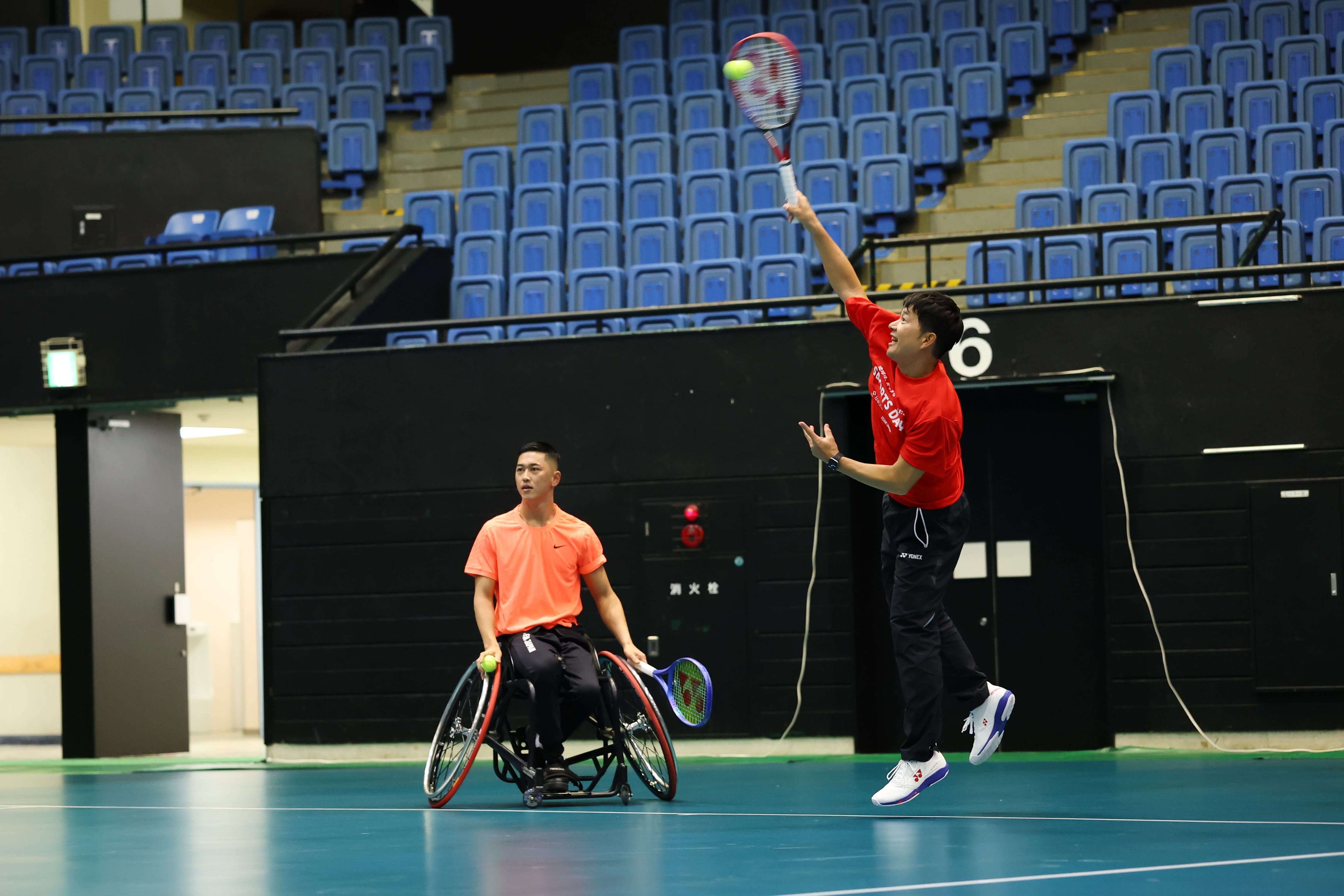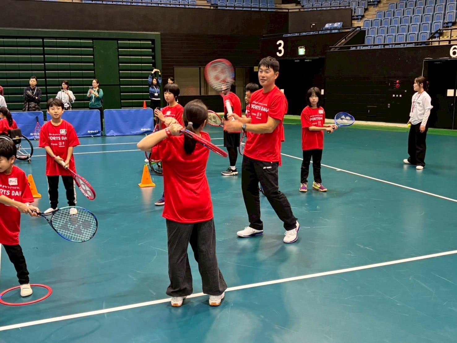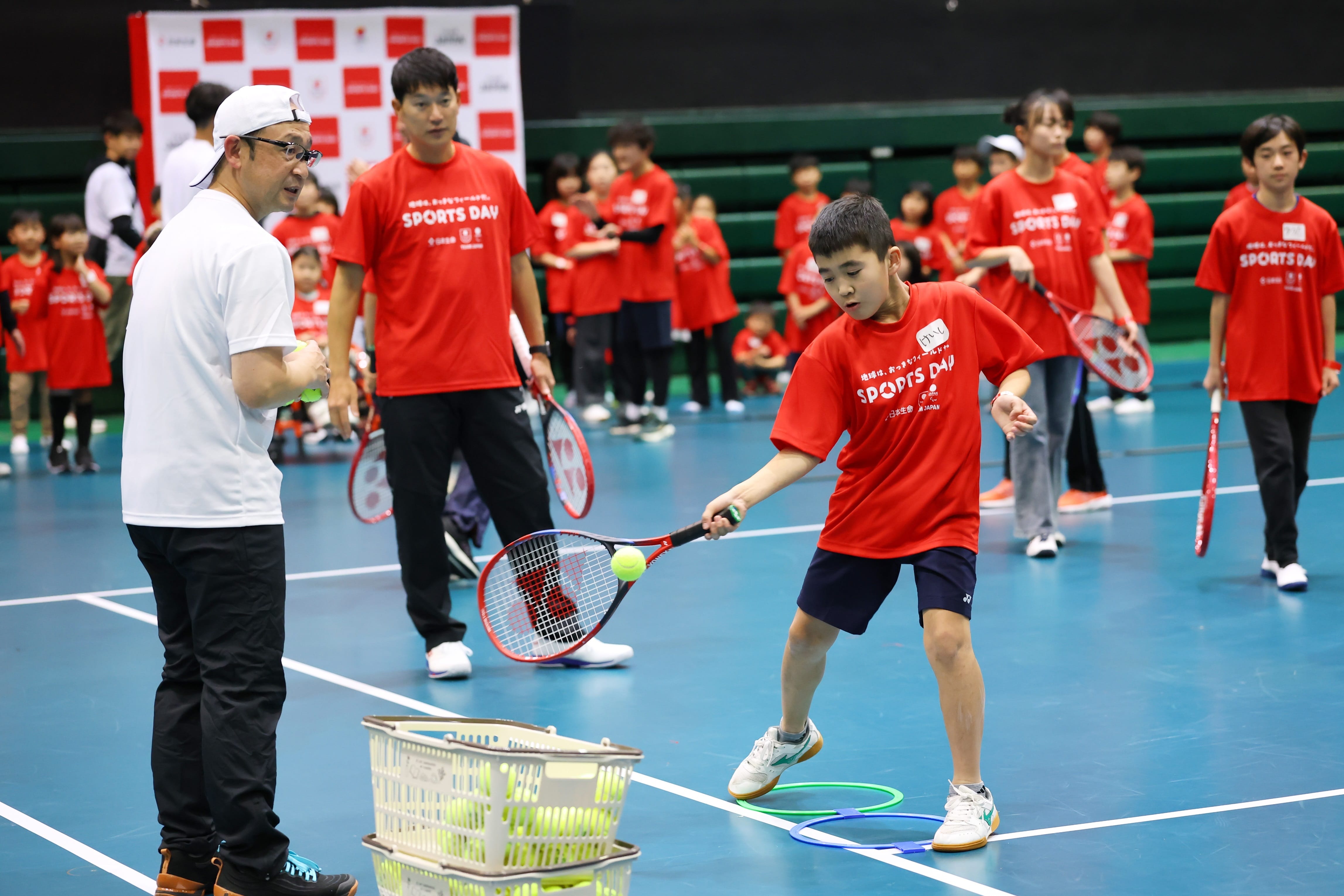 第2回は、愛知県の愛知県体育館で開催し、ゲストアスリートとしてプロ車いすテニスプレイヤー小田凱人選手(東海理化所属/日本生命サポート選手)・テニス近藤大生プロが参加しました。