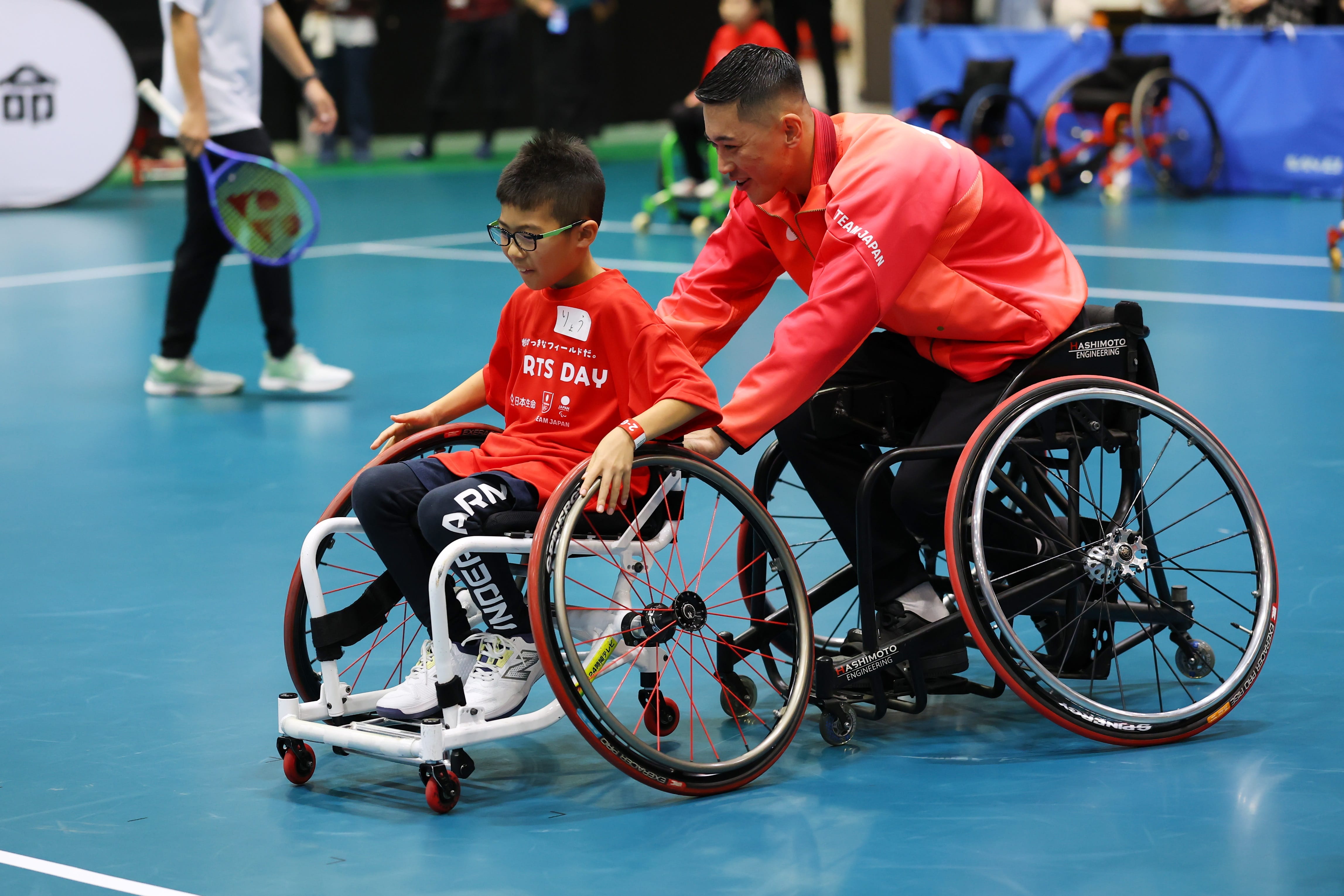 - 近くで素晴らしい選手と触れ合えることができて嬉しかったです。一人ずつ気にかけてくれて、車いすのこぎ方を世界のトップである小田選手にそばでフォローしていただけて感動しました。この体験は宝物です。
