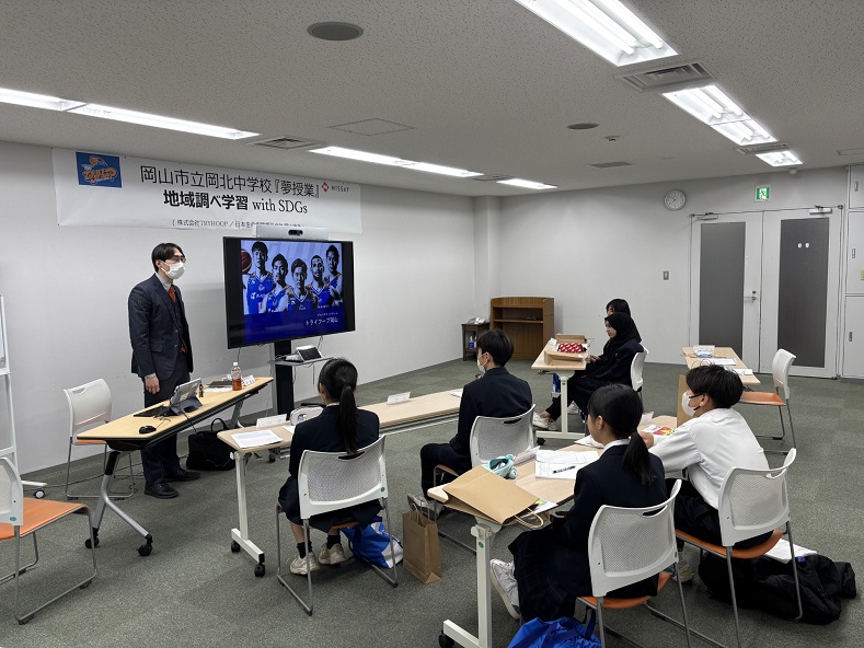 「B.LEAGUE Hope×日本生命 地域を元気に!バスケACTION」の一環として、トライフープ岡山と日本生命 岡山支社が連携し、岡山市立岡北中学校にて、夢授業を開催しました!