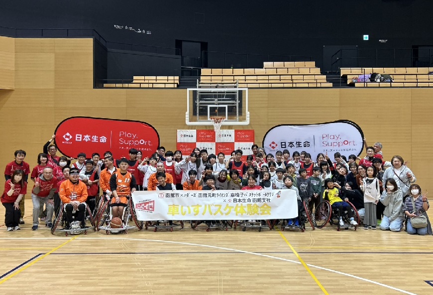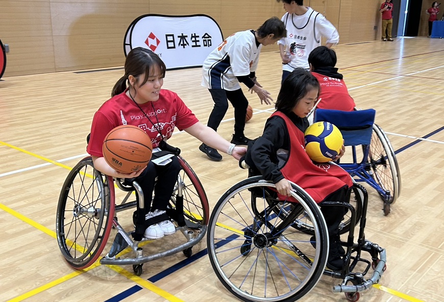 活動の一環として、車いすバスケットボールの魅力を伝えるべく、全国各地の支社で自治体や地元のチームに協力いただき体験会を開催しています。