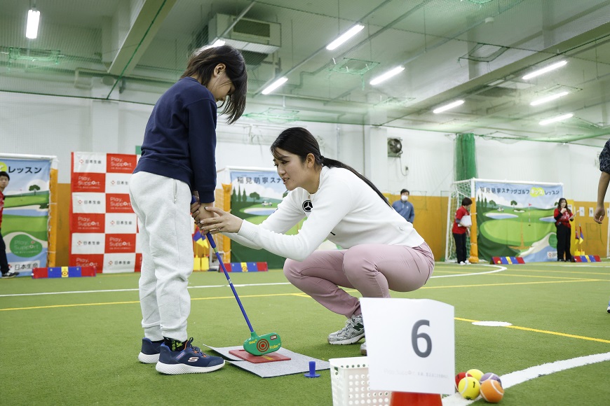 子どもたちに日本を代表する選手と接することで「夢・感動」を感じてもらうことやスポーツを通じて、多種多様な経験・人との交流を通じた成長機会を提供し、子どもたちが自分らしく心身共に健全に成長していくことを目的に、小学生向けのスナッグゴルフレッスンを初開催しました。