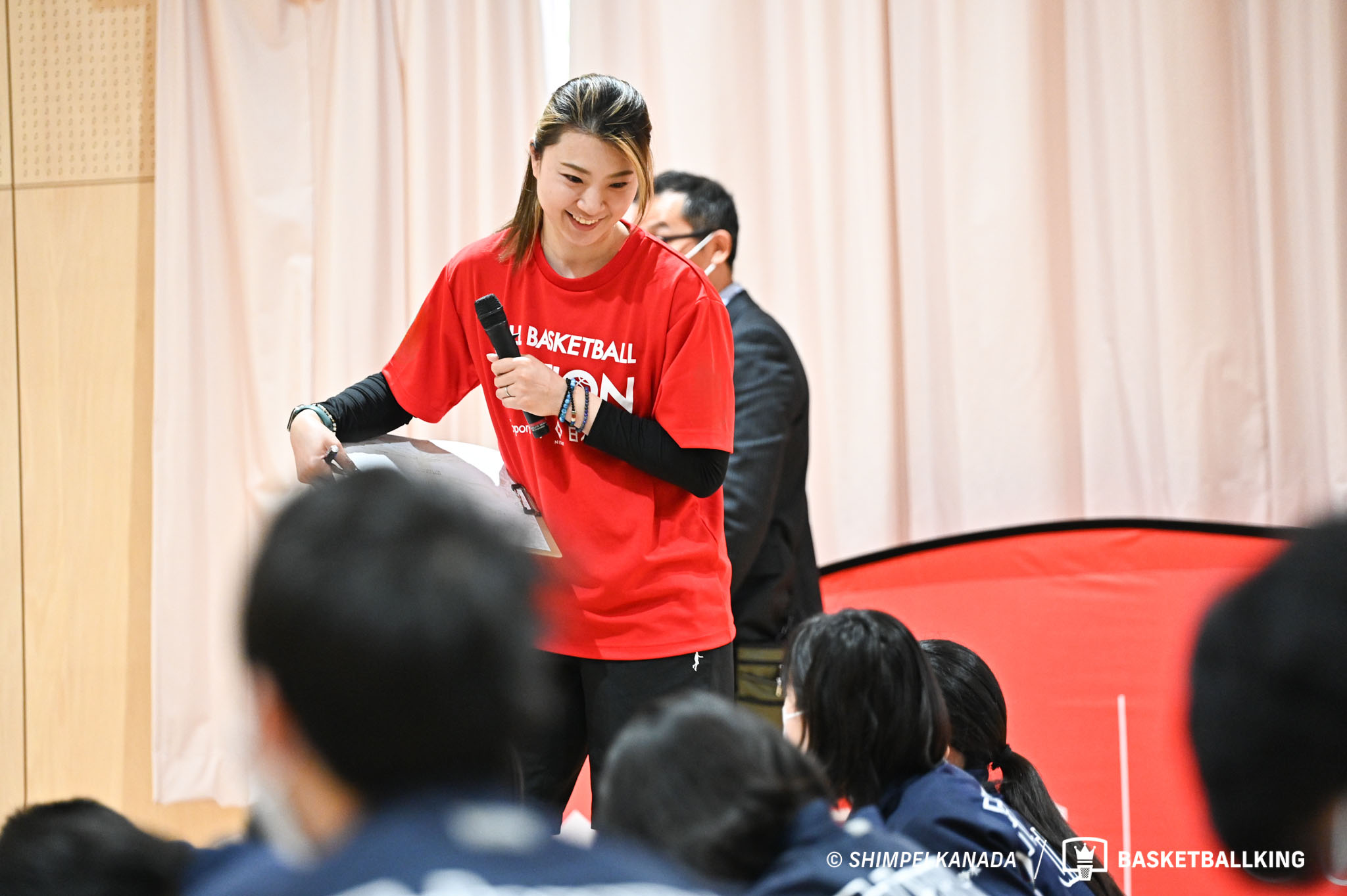 今回は、元バスケットボール日本代表選手の三好南穂さん、栗原三佳さん、3×3バスケットボール選手の桂葵さんが講師を務め、中学2年生の皆さんと、夢について考えました。