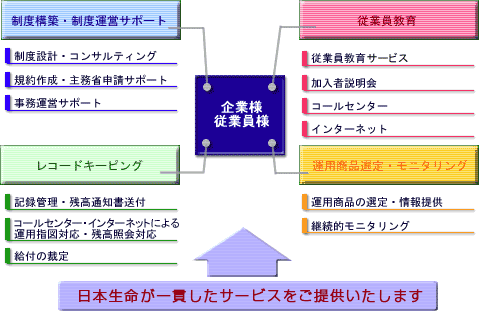 - 当社は、米国での確定拠出年金ビジネスの研究成果を活かし、ご加入者向け冊子・DVDなど効果的な教育ツールの開発、専門人材による従業員説明会の開催など、ご加入者が自己責任で運用先を決定していくために必要なサポートを行います。