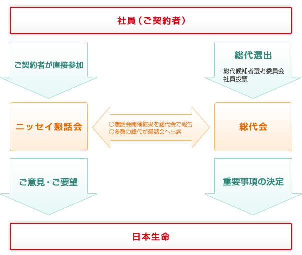 主なご意見・ご要望とその対応は、総代会や評議員会に報告しています。また、総代や当社役員も多数出席し、ニッセイ懇話会と総代会との相互の連動性を高める取組も続けています。