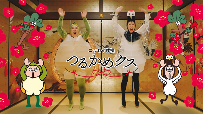 体操には、鶴と亀をモチーフにした4種類のシンプルな動きの中に、小さなお子様からシニアの方まで無理なく全身を動かせる動きが組み込まれています。