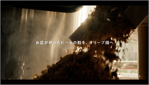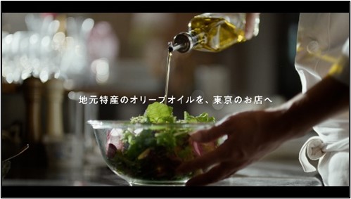 今回のCMで描いているのは、当社職員が企業と企業をつなぎ、地域活性化に取り組む姿です。具体的には、当社の職員が地方の特産のオリーブオイルを東京のレストランに届け、東京のレストランで作られたビールの粕を、地方のオリーブ畑の肥料にするという、循環型社会の事例を描いています。