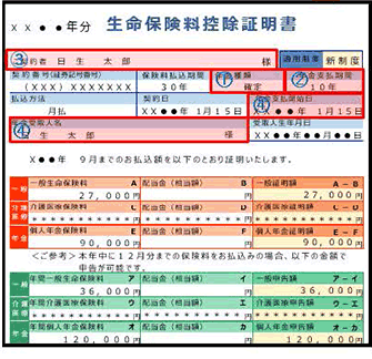 保険証券・契約内容通知書等でもご確認いただけます。 - ※年金契約の場合、証明書の④「年金受取人名」と「年金支払開始日」を転記してください。