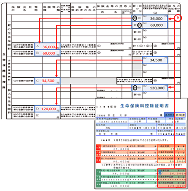 - ※控除枠の種類(一般、介護医療、年金)によって、申告書上の記入箇所が異なりますのでご注意ください。