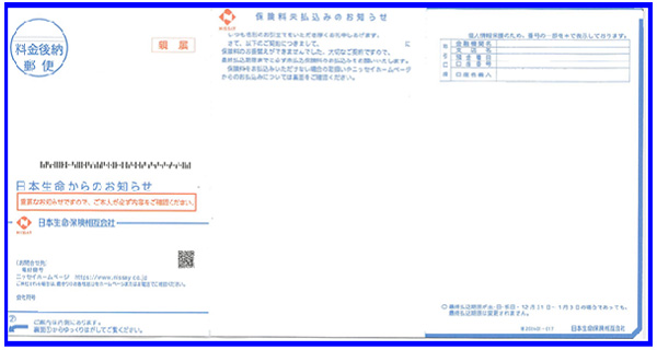 なお、振替できなかった理由によっては、このままでは口座振替によるお払込みをご利用いただけない場合もございますので、ニッセイコールセンターもしくは当社職員にご連絡ください。