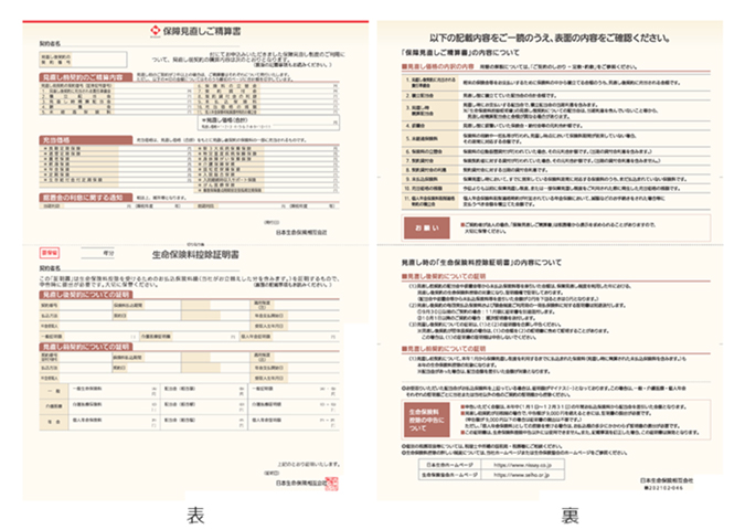 見直し前契約および見直し後契約に関する生命保険料控除証明書がついておりますので、あわせてご確認ください。