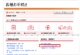 「各種お手続き」の画面で、「お手続き・書類発行」の「生命保険料控除証明書の再発行」を押します。
