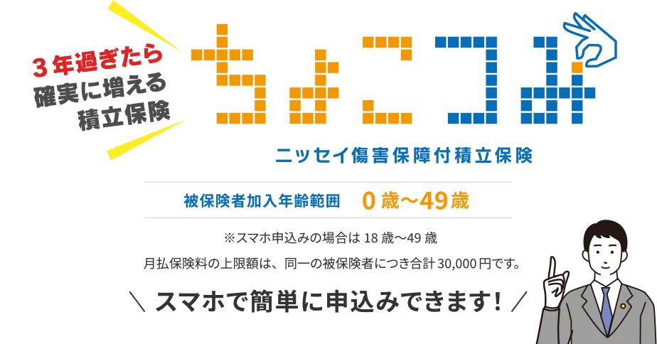 はい、「ちょこつみ」は一般生命保険料控除の対象となります。生命保険料控除を利用した場合、 所得税・住民税の負担が軽減されます。