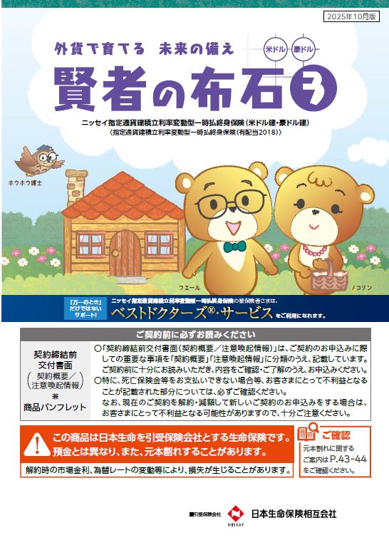 - ご検討にあたっては、「契約締結前交付書面兼商品パンフレット」と「例表」または「提案書」をあわせてご確認ください。