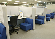 店内からは、HEPファイブの観覧車や大阪市内を見渡すことができ、お客さまのプライバシーに配慮した個別カウンターにて、ゆったりとご相談を承ることができます。 - 明るく落ち着いた雰囲気の窓口では、各種お手続きや保険相談はもちろんのこと、お客様の結婚、お子さまの誕生、定年退職などのライフイベントに応じたコンサルティングで人生設計のサポートをさせていただきます。