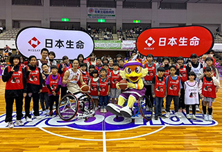 福島県内小中高生約4,000名を試合に無料招待。また、会場にて車いすバスケットボール体験イベントを実施しました。