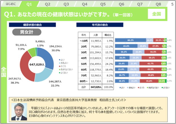 当活動は、日本生活習慣病予防協会監修の生活習慣や生活習慣病に関する「健康サポートアンケート」と、その回答に応じた情報や自治体情報の提供等を通じて、地域の皆様にご自身の生活習慣について考えていただく機会にしていただきました。