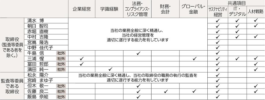 *3取締役候補者の選定基準は、「コーポレートガバナンス基本方針」第21条第1項に定めています。「コーポレートガバナンス基本方針」はこちら