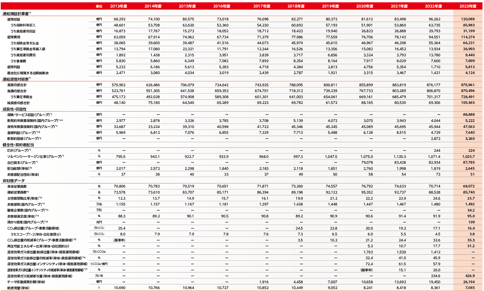 - 当社と大樹生命の一部の会計処理の統一に伴う表示方法の変更(2019年度・2020年度・2021年度・2022年度の数値を組み替え)
