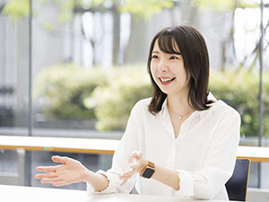 私は、現在、このニッセイ・サステナブルファイナンスの評価業務を担当しています。評価にあたっては、企業のサステナビリティ取組について、国際的な原則・ガイドラインへの適合性確認や、環境・社会に与える影響分析を行っています。案件によっては、実際に企業と面談し、対話を通じて新たな目標を設定していただいたケースや、実際に、自身の評価した案件がメディアで取り上げられたこともある等、評価担当者としてのやりがいを実感しています。